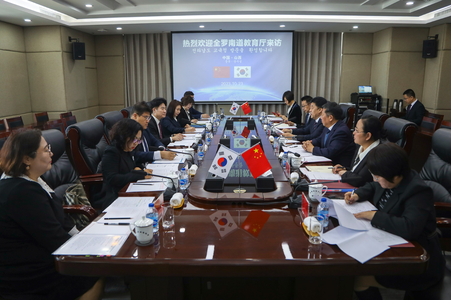 此次访问是韩国全罗南道教育厅换届选举后首次来访。座谈会上,马骏对金大中教育监一行的到来表示热烈欢迎,介绍了山西省与韩国全罗南道交往的历史、山西省情以及近年来山西教育发展情况,并对今后交流合作提出倡议,希望两省道进一步扩大教育领域的互利合作和交流互鉴,深化推进校际多层次多领域务实合作,深化师生交流交往和互学互鉴,为未来合作争取最大公约数。