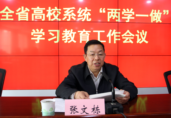 会上,张文栋就高校系统“两学一做”学习教育工作提出六方面的要求。一是深刻认识“两学一做”学习教育的重大意义。要通过“两学一做”学习教育,自觉运用系列重要讲话精神和党章党规统一思想认识,树立行为规范,提高高校各级党组织的凝聚力、战斗力,提升高校党建科学化水平,为高等教育事业改革发展提供坚强政治保障。二是准确把握学习教育重点,确保把党章党规和系列讲话学深学透。要能够做到明方向、固根本、高标准、严底线,以《中国共产党章程》、《准则》、《条例》为遵循,持续深入学习,把学党章党规与学系列讲话统一起来,吃透精神实质,融会贯通,在思想上深化认识,在行动上强化自觉。三是以学促做,知行合一,发挥好共产党员模范表率作用。“两学一做”基础在学,关键在做,高校党员干部要在思想上做坚定理想信念的表率,在政治上做树立“四个意识”的表率,在行动上做尊崇党章、严守党规的表率,在工作上做敢于担当、勇于创新的表率,以身作则,当好标杆,充分发挥带头作用,坚决同党中央保持高度一致。四是强化问题导向,对症下药抓好学习教育。“两学一做”学习教育过程中,要重点解决在坚定共产主义理想信念、牢固树立党的意识和党员意识、强化党的宗旨意识、积极践行社会主义核心价值观、推动工作实践等五个方面暴露出的突出问题,要结合巡视整改和回头看工作,带着问题学、针对问题改。五是加强分类指导,把学习教育具体化、精准化。各高校党委要加强顶层设计,根据校内不同党员群体、不同类型基层党组织的特点,对学习教育的内容安排、组织方式等提出具体要求,把学习教育的任务具体化、精准化、差异化,因人施教,精准引导,确保使每一位党员同志都能受到实实在在的教育和提高。六是加强组织领导,坚持两手抓、两促进。各高校要成立专门领导组和工作机构,紧紧围绕学校中心工作,制订实施方案,明确工作任务和时间节点,将学习教育同深化教学科研改革、提高教育质量、维护高校和谐稳定、落实本校本部门年度任务等各项工作紧密结合起来,强化督导检查,确保将中央及省委的各项要求落到实处。