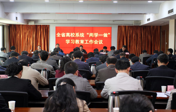 4月28日上午,省高校工委召开全省高校系统“两学一做”学习教育工作会议。高校工委书记、教育厅厅长张文栋讲话,高校工委副书记、党组成员张培良主持会议,相关厅领导出席会议。全省各高校党委书记、组织部部长,厅直中专学校党委书记、党办主任参加了会议。