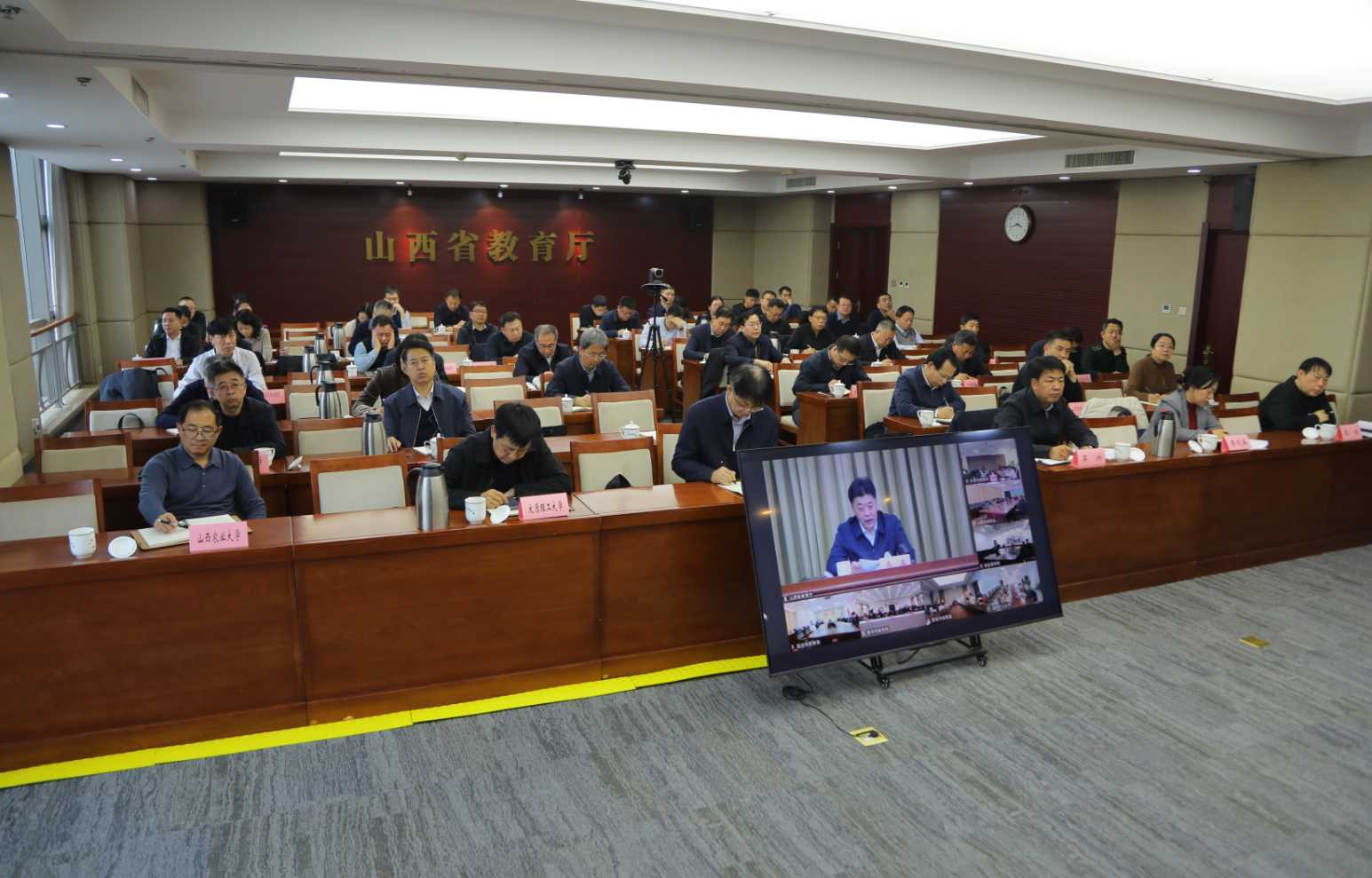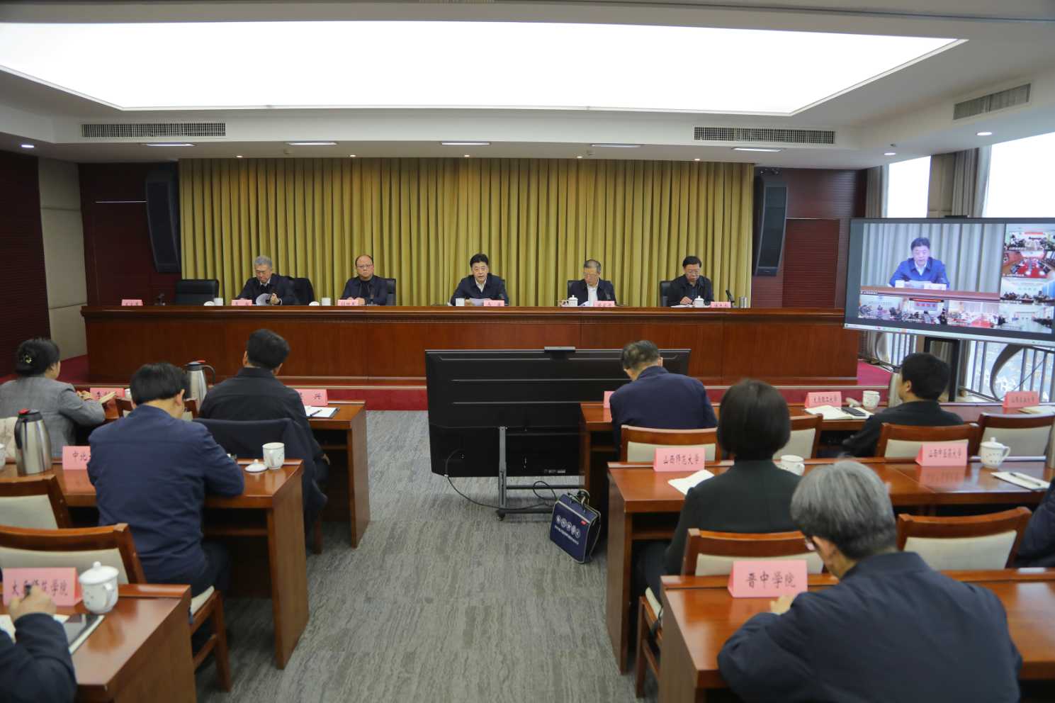 会议以线上线下相结合方式举行。省委社会工作部、省人社厅、省工信厅、省国资委、团省委、省工商联负责同志,驻并省属高校主要负责同志在主会场参加会议。各市党委教育工作领导小组负责同志、市教育局主要负责同志及市直有关单位负责同志、太原市以外高校主要负责同志在分会场参会。中北大学、山西机电职业技术学院作交流发言。